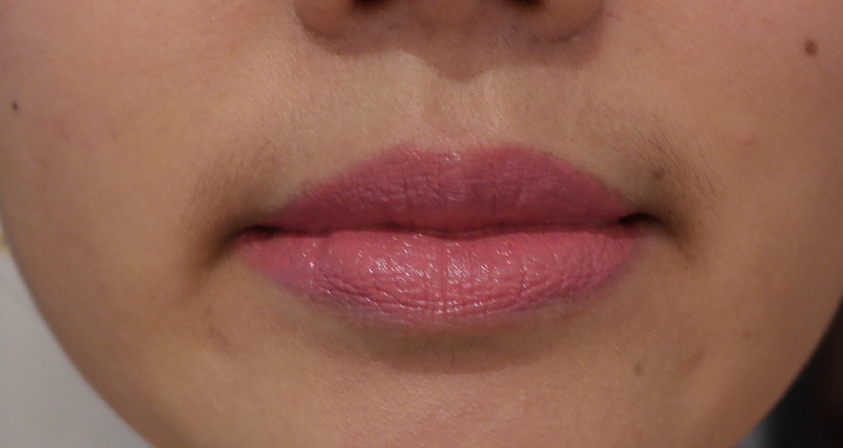 as you can see, it has a satin finish and a mid level of pigment. its staying power is about the same as Melted, but it does stain a tiny bit better. Melted tends to look patchy and cracked after it wears off, but Kiss and Blush leaves a barely there stain. again, the staining power might vary in a less MLBB shade. here’s how Rose Libre looked after a meal. please excuse the lint 😛