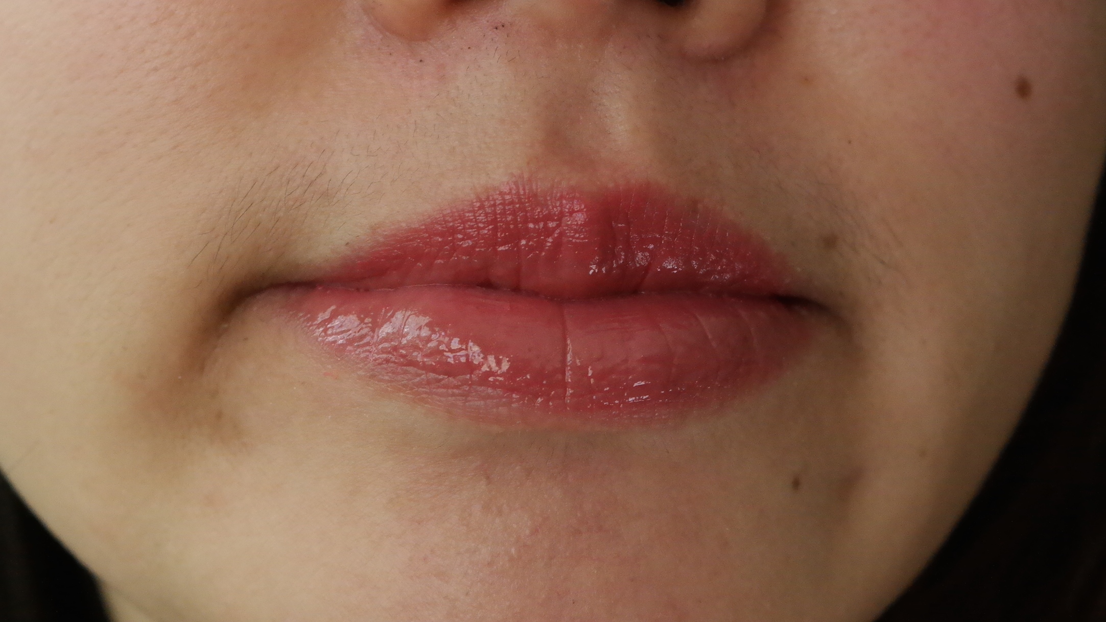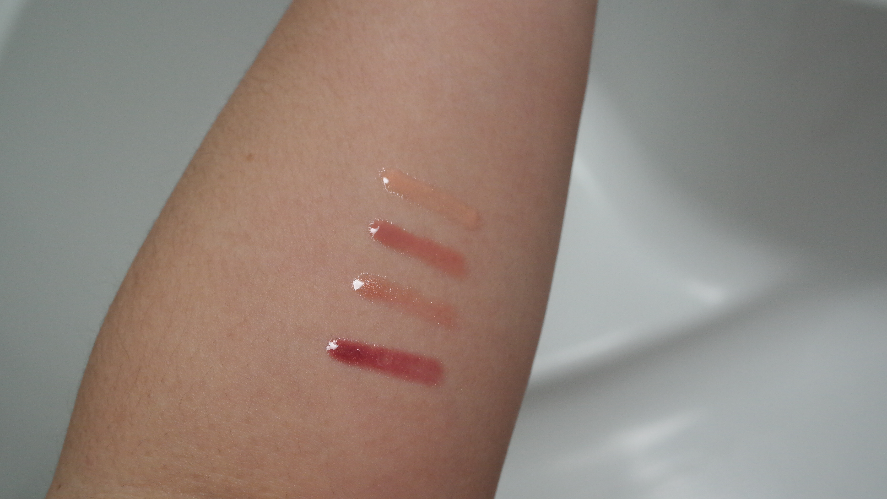 Temptation’s Choice has the most shimmer of all the glosses and is a peach champagne gloss. you can see a bit more of the sparkles in the left corner but like i said before, these are all very natural glosses that don’t have much pigmentation or shimmer and makes the lips shiny rather than glossy.